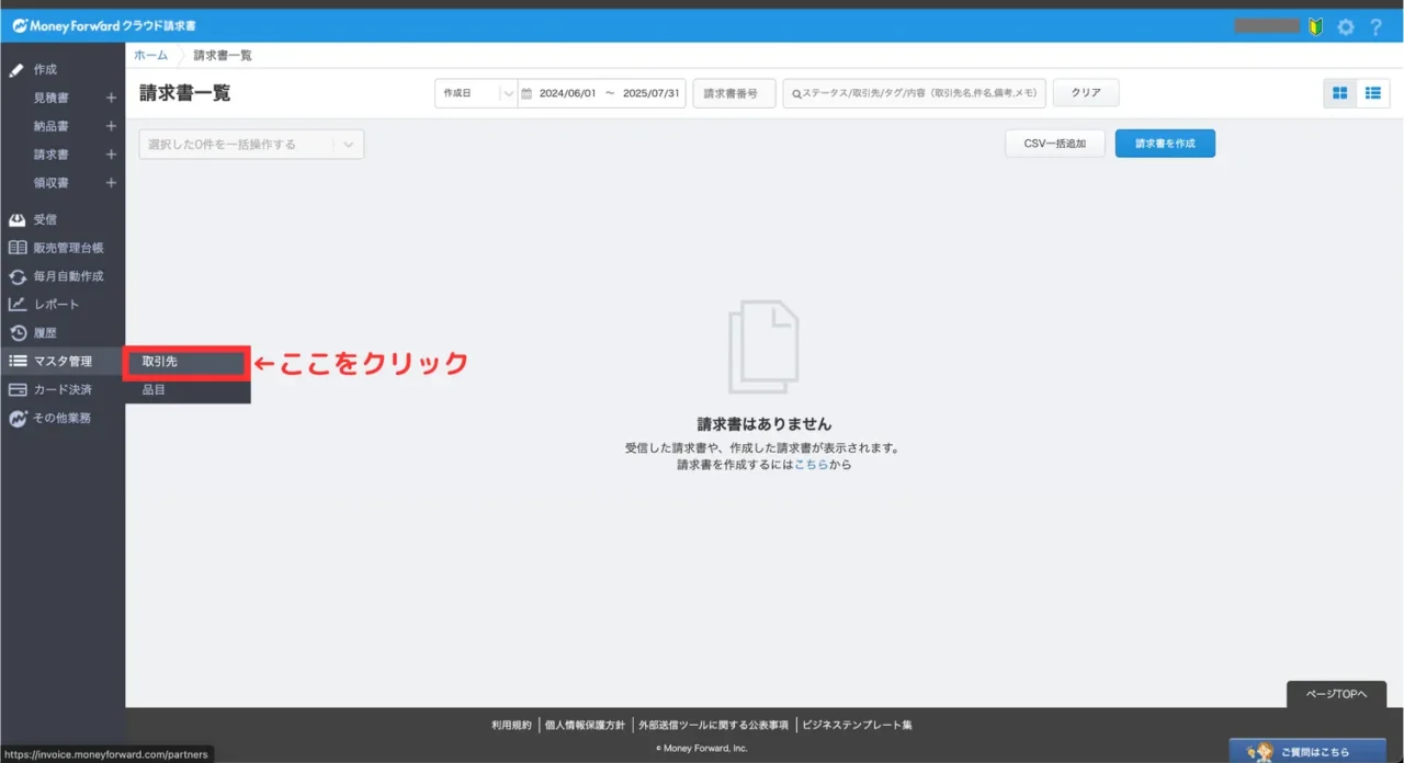 請求書をスムーズに作成するため、取引先と品目(明細)を事前に登録しておきます。