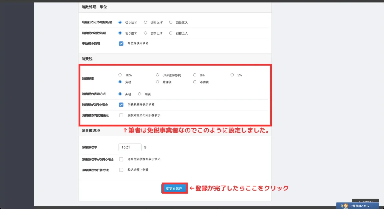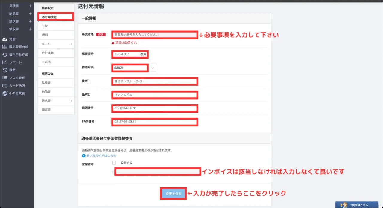 👉 送付元情報や口座設定をこのように登録